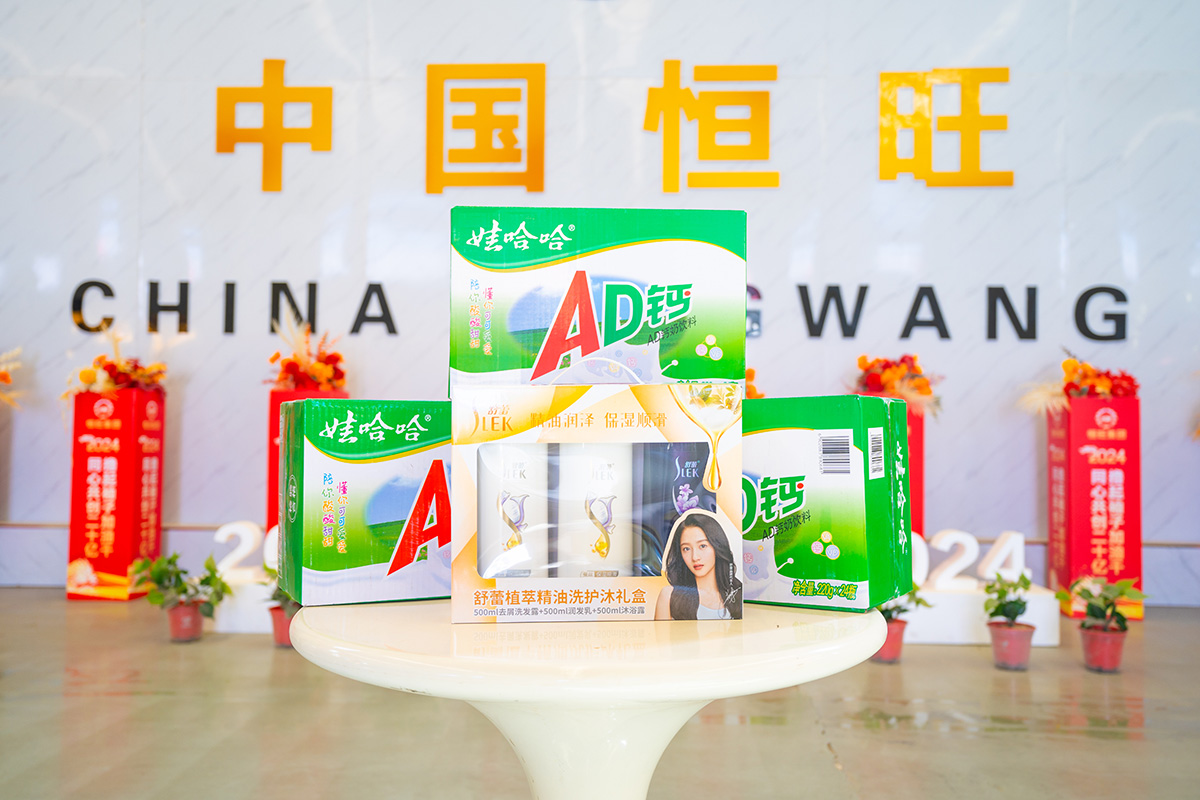 一箱可口的(de)娃哈哈飲品以(yǐ)及精選護理套(tào)裝